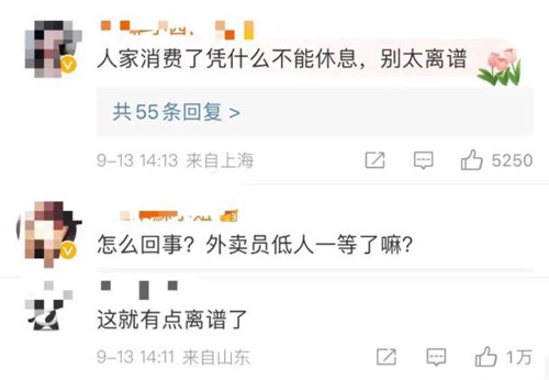 还有网友认为,这名骑手消费了就是消费者,又为何对人驱赶呢?