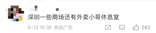 有网友提到,其实部分商场会为骑手准备专门的休息区。