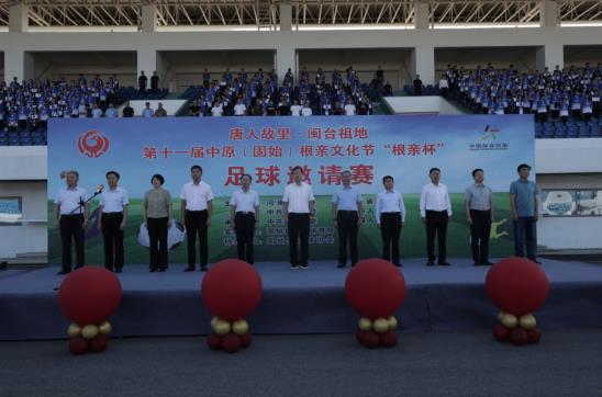 开幕式在雄壮的国歌声中拉开帷幕,固始县委书记、县长杨浩威宣布“唐人故里·闽台祖地”第十一届中原(固始)根亲文化节“根亲杯”足球邀请赛开赛并为比赛开球。