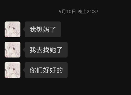 杨先生告诉记者,他们没有料到,决定离婚的姐姐最终会选择轻生。9月10日21时37分,姐姐突然给家人发来几条消息“我想妈了,我去找她了,你们好好的”,并于当天发了一条朋友圈“愿我长眠,无人念我,且无来生”。“任凭家人怎么劝说,姐姐最终选择了跳海自杀。”