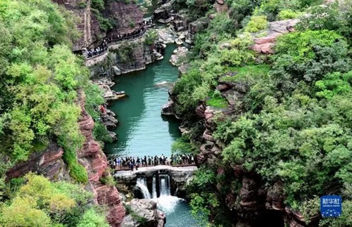 10月2日,游客在河北省武安市东太行景区观光(无人机照片)。