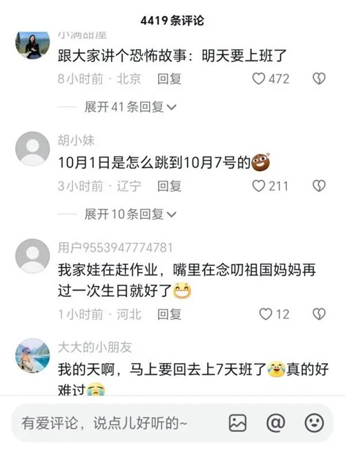 【假期结束!今年法定节假日过完了】10月6日,十一假期最后一天,大家都是什么感觉?
