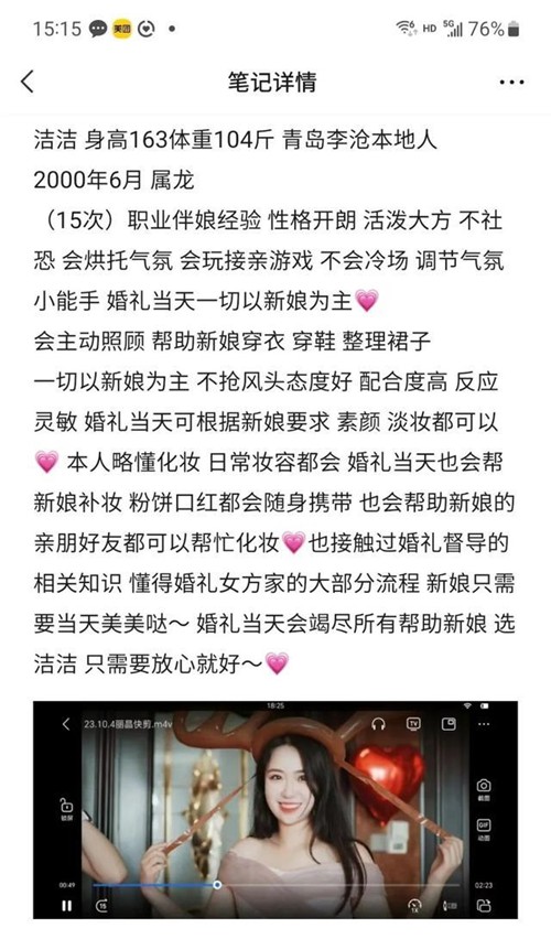 对于安全问题,洁洁有自己的原则:不接去外地做伴娘的活。“如果是青岛本地一些新娘,需要我提前一天住在她家里,倒是可以考虑。”这是洁洁给自己定的底线。