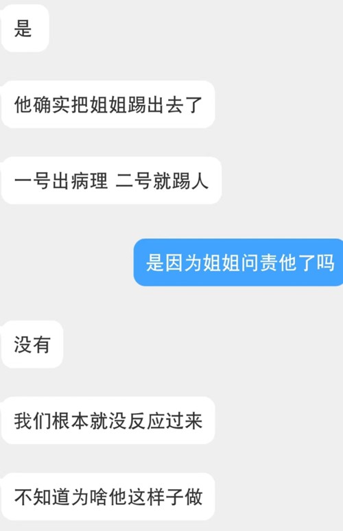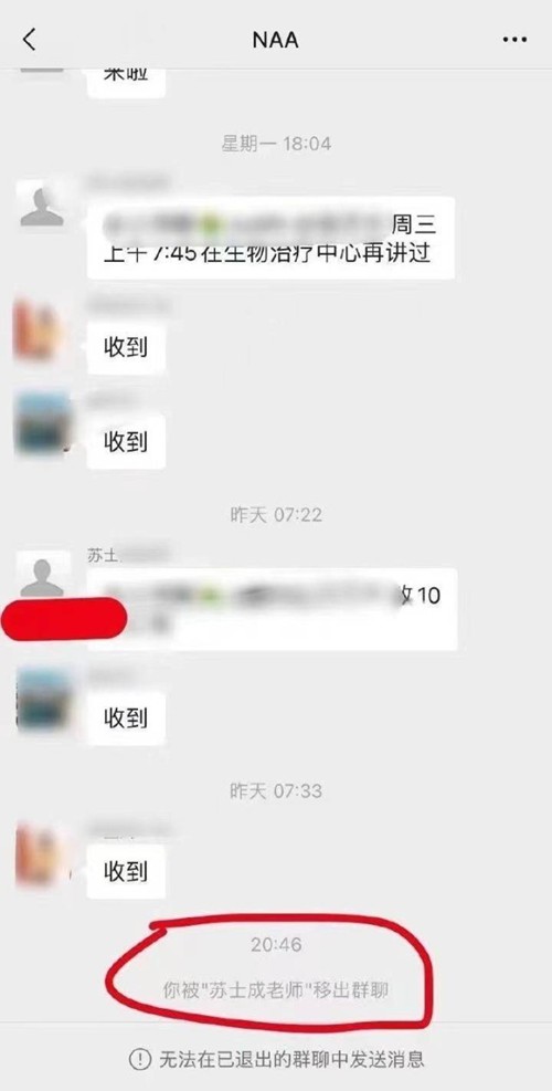 乐乐确认了黄某患上胰腺癌的病情和被苏姓导师踢出群聊的情况属实,“他确实把姐姐踢出去了,一号出病理,二号就踢人”。在拿到病理报告后,乐乐称姐姐并未问责导师而被移出群聊,“我们根本就没反应过来,不知道为啥他这样子做。”