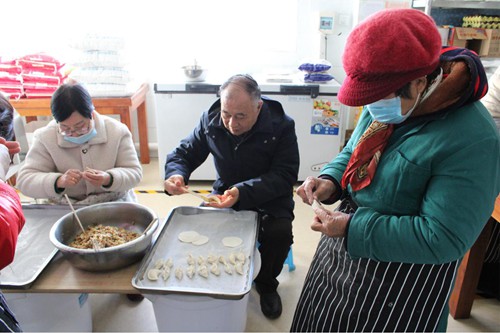 在托养中心,张银良与工作人员和护工们一起包饺子,大家边包边聊,笑语不断,现场气氛十分热闹。同时,张银良向托养中心负责人详细了解了托养中心的安全工作开展情况,要求托养中心继续做好安全管理工作,确保托养残疾人安全过冬。