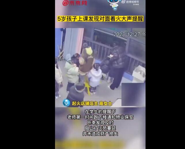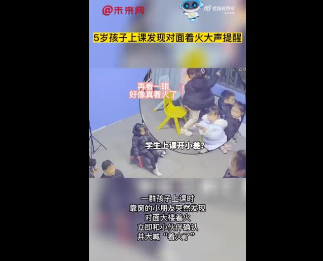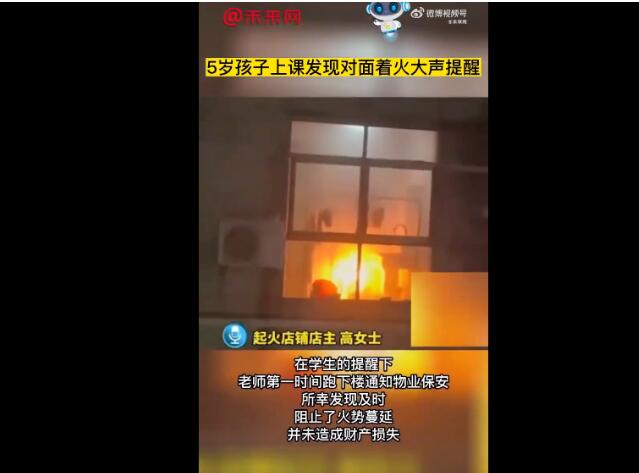 原标题:5岁孩子上课发现对面着火大声提醒 阻止了一场火灾