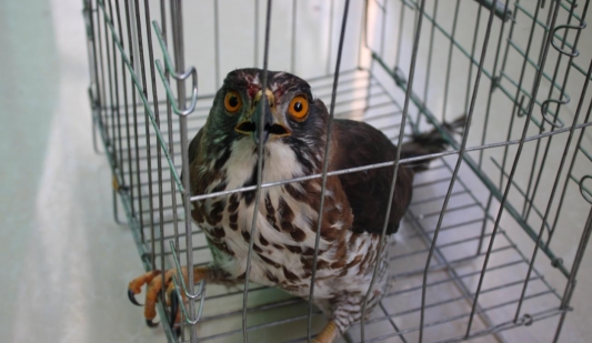 1月3日,河南省确山县林业发展服务中心接力救助一只国家二级保护动物—雀鹰。