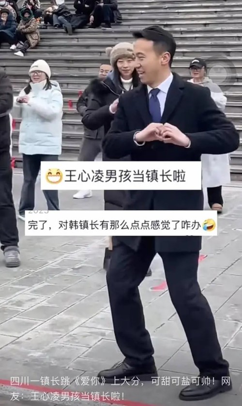 【镇长跳《爱你》笑得嘴角压不住】1月22日,一则“四川一镇长跳《爱你》”的视频在网络上传播,引发关注,网友留言:王心凌男孩当镇长啦,可甜可盐可帅。纷纷点赞:“穿得板板正正,跳得可可爱爱”。