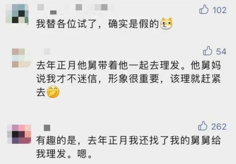 随着时代发展,“正月不理发”的习俗已经淡化了。有报道称,成年人开工前、孩子开学前,都是店里的客流高峰,大家对于“正月不理发”的态度也都是一笑了之。