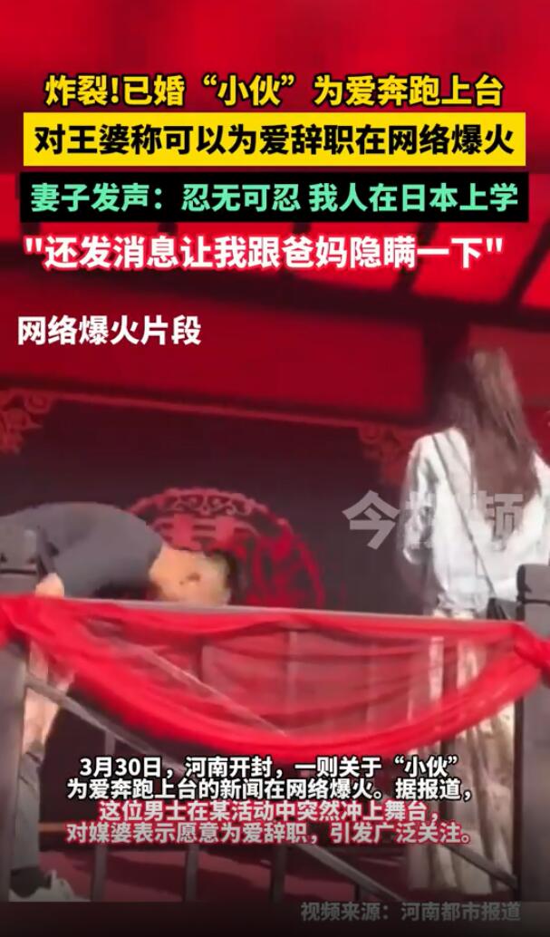 【已婚男在“王婆说媒”走红 妻子发声】近日,因在“王婆说媒”现身而爆火的已婚男子致歉称,自己本意是想让妻子尽快回国,想着妻子一着急就回来了,结果两人大吵一架,妻子一直不回他消息,今天重新联系上后,他已经向妻子正式道歉,上午也向昨天在舞台上的女子解释了事情的原委。