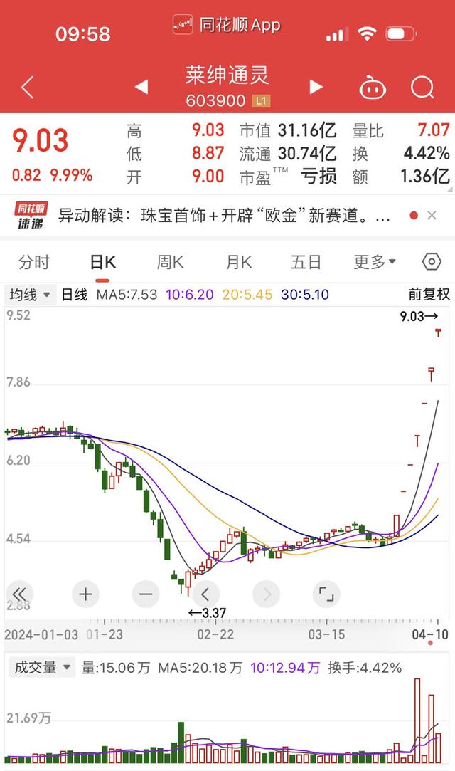 与此同时,早上A股黄金板块也反复活跃,莱绅通灵(9.030, 0.82, 9.99%)迎来了七连板。