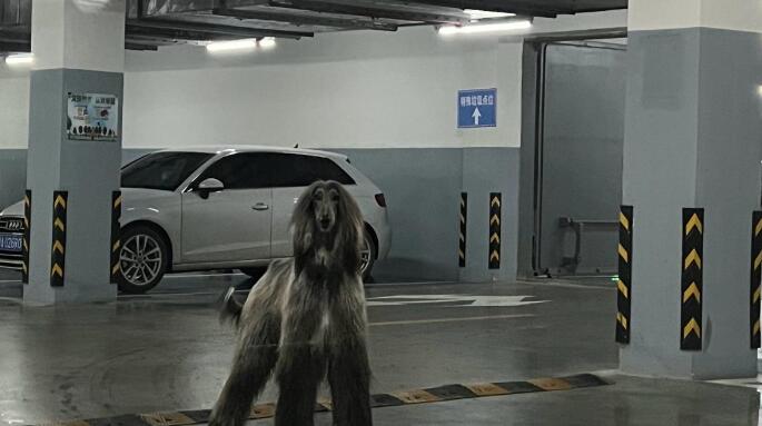 金女士发布的视频显示,在车库内,一条顶着较长毛发、身形庞大的狗从她车前走过,在驾驶位左前方停下,对着车辆吠叫了两声。该视频已获超过10万名网友点赞,有不少网友被狗的独特外形所吸引,还有不少网友讨论称这只狗是阿富汗猎犬,属于禁养犬。