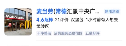 在该网友发布的截图中可以看到,麦当劳(常德汇景中央广场店)的头像处配图是一名正在吃汉堡的女生。