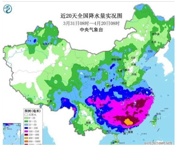 截至4月19日,广东中北部大面积站点4月累积降雨量已经打破历史同期纪录。其中,广东韶关,截至今天早晨08时的4月累积降水量就已达到584.4毫米,提前、大幅打破4月总降雨量纪录417毫米,此外佛冈、英德接下来也极有可能刷新4月总雨量纪录。随着降雨持续进行,广东中北部还有更多地区有望刷新4月整月降水的历史极值纪录。