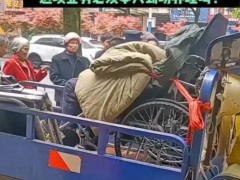 老人被家人用三轮拉到银行取存款 这是什么情况?(图)