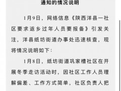 陕西洋县一社区要求返乡过年人员报备 官方凌晨致歉、撤销通知